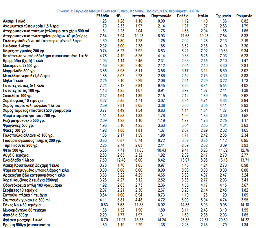 Επαναλαμβανόμενη έρευνα σύγκρισης τιμών τυπικού καλαθιού σούπερ μάρκετ στην Ελλάδα με άλλες Ευρωπαϊκές χώρες