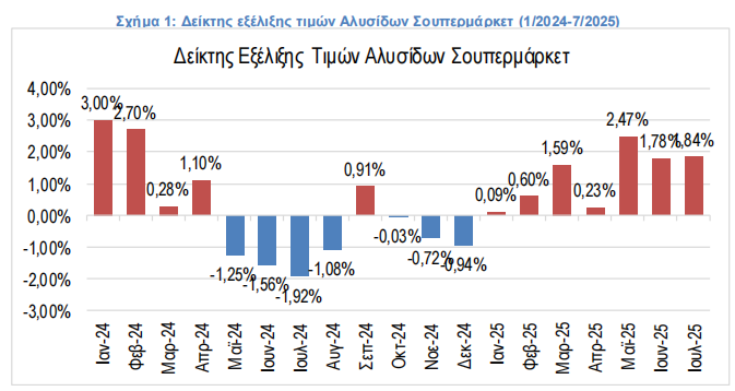• Πληθωρισμός στα σουπερμάρκετ τον Ιούλιο 2025 στο +1,84%