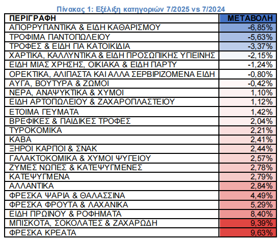Πίνακας 1: Εξέλιξη κατηγοριών 7/2025 vs 7/2024